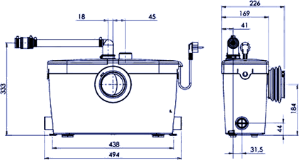 Бесшумный фекальный насос-измельчитель SFA SANITOP Для подключения раковины, унитаза или писсуара. Для стандартных унитазов с горизонтальным выходом.