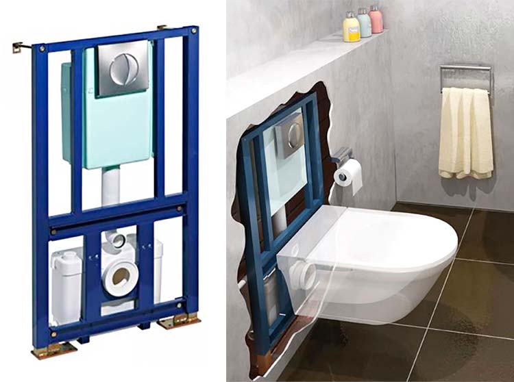 Фекальный насос-измельчитель SANICOMPACT встроенный в ножку унитаза.
